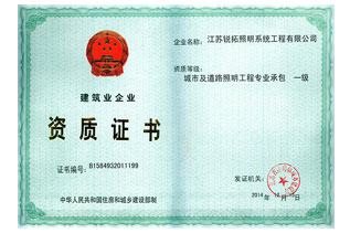 城市及道路照明工程專業(yè)承包資質(zhì)等級(jí)一級(jí)證書1