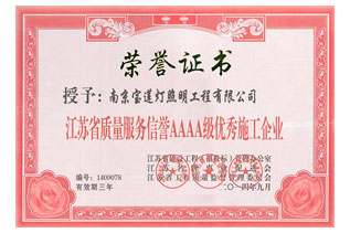 質(zhì)量服務(wù)信譽(yù)AAAA級(jí)優(yōu)秀施工企業(yè)