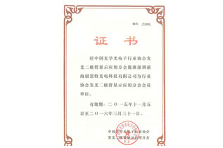 中國(guó)光學(xué)光電子行業(yè)協(xié)會(huì)會(huì)員證書